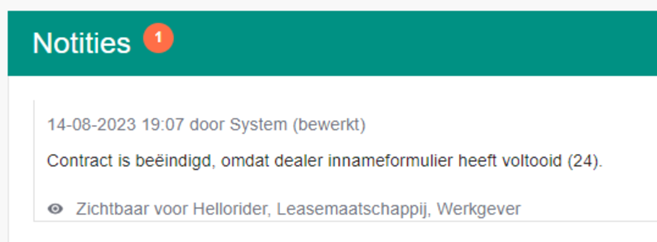 4. Je krijgt zo snel mogelijk een e-mail notificatie van de kosten voor het voortijdig beëindigen (van de Leasemaatschappij) en het overname aanbod van de medewerker (dit laatste is ter informatie voor jou als werkgever).