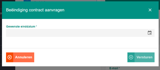 2. Zoek het leasecontract op waarvoor je een mutatie wilt doorgeven. Klik dan op de button acties en start beëindiging aanvragen.